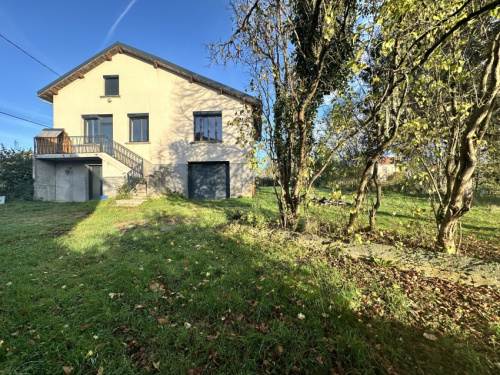 Maison en pierres de 1890 en cours de rénovation (165m² hab) composée d'une entrée; cuisine-salle à manger avec cheminée (polyflam), buanderie avec sortie sur terrain, séjour, cellier,salle de bains, wc, caves en sous-sol -